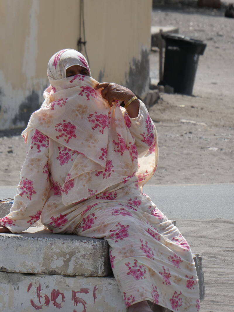 Der Reiseleiter nahm uns in Empfang und wir besichtigten zunächst Muscat, die Hauptstadt, am nächsten Tag ging es ab in die Wüste, zunächst entlang der Küste, dann auf Dünen und zu Nomaden, die in einem Zelt zu Touristenzwecken zum Tee einluden. Hier erfuhr ich, dass die Frauen Masken tragen, angeblich als Sonnen-schutz, aber eine Ausstellung ließ die Aussage Lügen strafen, denn unter der Maske bildete sich häufig Exeme. Ich vermute, eine Art nomadische Frauenverschleierung?